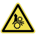 PET樹脂製の警告ラベルです。表面はラミネート加工です。三角形のシンプルな注意表示です。