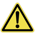PET樹脂製の警告ラベルです。表面はラミネート加工です。三角形のシンプルな注意表示です。