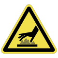 PET樹脂製の警告ラベルです。表面はラミネート加工です。三角形のシンプルな注意表示です。