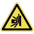 PET樹脂製の警告ラベルです。表面はラミネート加工です。三角形のシンプルな注意表示です。