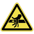 PET樹脂製の警告ラベルです。表面はラミネート加工です。三角形のシンプルな注意表示です。