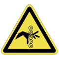PET樹脂製の警告ラベルです。表面はラミネート加工です。三角形のシンプルな注意表示です。