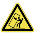PET樹脂製の警告ラベルです。表面はラミネート加工です。三角形のシンプルな注意表示です。