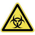 PET樹脂製の警告ラベルです。表面はラミネート加工です。三角形のシンプルな注意表示です。