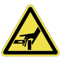 PET樹脂製の警告ラベルです。表面はラミネート加工です。三角形のシンプルな注意表示です。