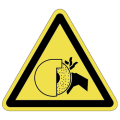 PET樹脂製の警告ラベルです。表面はラミネート加工です。三角形のシンプルな注意表示です。