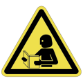 PET樹脂製の警告ラベルです。表面はラミネート加工です。三角形のシンプルな注意表示です。