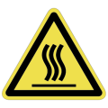 PET樹脂製の警告ラベルです。表面はラミネート加工です。三角形のシンプルな注意表示です。
