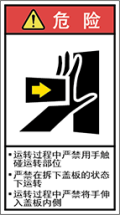 TOP中国語ラベル (簡体) はさまれ Mサイズ (90×50) ISO Y7H-122A-M 挟まれ (90×50) 価格: ¥210 (税込 ¥231) 販売期間: 型番: Y7H-122A-M 数量: 枚 在庫 在庫あり 日本語訳 ・運転中は稼動部に手を触れないこと・カバーを外したまま運転しないこと・運転中はカバーの内側に手を入れないこと 商品説明 PET樹脂製の警告ラベルです。表面はラミネート加工です。 商品仕様 製品名: 警告ラベル 中国 簡体語 型番: Y7H-122A-M 外寸法: 幅50mm × 高さ90mm 製品重量: 2g ・RoHS(10種)対応 / REACH対応 ・屋外/屋内対応 ・スクリーン印刷 ・耐熱性 -20℃〜80℃ ・耐油性 ギヤ油72時間変化なし ・耐候性 ウェザーメーター 400時間変化なし
