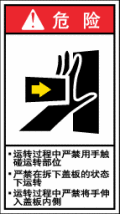 TOP中国語ラベル (簡体) はさまれ Mサイズ (90×50) SEMI・ANSI YH-122A-M 挟まれ (90×50) 価格: ¥210 (税込 ¥231) 販売期間: 型番: YH-122A-M 数量: 枚 在庫 在庫あり 日本語訳 ・運転中は稼動部に手を触れないこと・カバーを外したまま運転しないこと・運転中はカバーの内側に手を入れないこと 商品説明 PET樹脂製の警告ラベルです。表面はラミネート加工です。 商品仕様 製品名: 警告ラベル 中国 簡体語 型番: YH-122A-M 外寸法: 幅50mm × 高さ90mm 製品重量: 2g ・RoHS(10種)対応 / REACH対応 ・屋外/屋内対応 ・スクリーン印刷 ・耐熱性 -20℃〜80℃ ・耐油性 ギヤ油72時間変化なし ・耐候性 ウェザーメーター 400時間変化なし