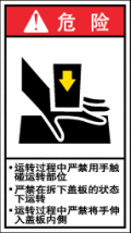 TOP中国語ラベル (簡体) はさまれ Mサイズ (90×50) SEMI・ANSI YH-122B-M 挟まれ (90×50) 価格: ¥210 (税込 ¥231) 販売期間: 型番: YH-122B-M 数量: 枚 在庫 在庫あり 日本語訳 ・運転中は稼動部に手を触れないこと・カバーを外したまま運転しないこと・運転中はカバーの内側に手を入れないこと 商品説明 PET樹脂製の警告ラベルです。表面はラミネート加工です。 商品仕様 製品名: 警告ラベル 中国 簡体語 型番: YH-122B-M 外寸法: 幅50mm × 高さ90mm 製品重量: 2g ・RoHS(10種)対応 / REACH対応 ・屋外/屋内対応 ・スクリーン印刷 ・耐熱性 -20℃〜80℃ ・耐油性 ギヤ油72時間変化なし ・耐候性 ウェザーメーター 400時間変化なし