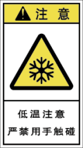 TOP中国語ラベル (簡体) 高温 Mサイズ (90×50) SEMI ・ ANSI YH-417-M 低温注意 (90×50) 価格: ¥210 (税込 ¥231) 販売期間: 型番: YH-417-M 数量: 枚 在庫 在庫あり 日本語訳 低温注意 手を触れるな 商品説明 PET樹脂製の警告ラベルです。表面はラミネート加工です。 商品仕様 製品名: 警告ラベル 中国 簡体語 型番: YH-417-M 外寸法: 幅50mm × 高さ90mm 製品重量: 2g ・RoHS(10種)対応 / REACH対応 ・屋外/屋内対応 ・スクリーン印刷 ・耐熱性 -20℃〜80℃ ・耐油性 ギヤ油72時間変化なし ・耐候性 ウェザーメーター 400時間変化なし
