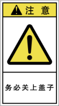 TOP中国語ラベル (簡体) その他 Mサイズ (90×50) SEMI ・ ANSI YH-716-M カバーを閉める (90×50) 価格: ¥210 (税込 ¥231) 販売期間: 型番: YH-716-M 数量: 枚 在庫 在庫あり サイズ:縦 90mm 横 50mm 日本語訳必ずカバーを閉める 商品説明 PET樹脂製の警告ラベルです。表面はラミネート加工です。 商品仕様 型番: YH-716-M 外寸法: 幅50mm × 高さ90mm 製品重量: 2g ・RoHS(10種)対応 / REACH対応 ・屋外/屋内対応 ・スクリーン印刷 ・耐熱性 -20℃〜80℃ ・耐油性 ギヤ油72時間変化なし ・耐候性 ウェザーメーター 400時間変化なし