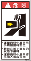 TOP中国語ラベル (繁体) はさまれ Sサイズ (61×31) ZH-122A-S 挟まれ(61×31) 価格: ¥160 (税込 ¥176) 販売期間: 型番: ZH-122A-S 数量: 枚 在庫 在庫あり 日本語訳 ・運転中は稼動部に手を触れないこと・カバーを外したまま運転しないこと・運転中はカバーの内側に手を入れないこと 商品説明 PET樹脂製の警告ラベルです。表面はラミネート加工です。 商品仕様 製品名: 警告ラベル 繁体語 型番: ZH-122A-S 外寸法: 幅31mm × 高さ61mm 製品重量: 1g
