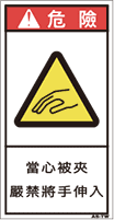 TOP中国語ラベル (繁体) はさまれ Sサイズ (61×31) ZH-133-S 挟まれ(61×31) 価格: ¥160 (税込 ¥176) 販売期間: 型番: ZH-133-S 数量: 枚 在庫 在庫あり 日本語訳 挟み込み注意手を入れるな 商品説明 PET樹脂製の警告ラベルです。表面はラミネート加工です。 商品仕様 製品名: 警告ラベル 繁体語 型番: ZH-133-S 外寸法: 幅31mm × 高さ61mm 製品重量: 1g
