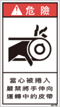 TOP中国語ラベル (繁体) 巻き込まれ Mサイズ (90×50) ZH-223-M 巻込まれ(90×50) 価格: ¥210 (税込 ¥231) 販売期間: 型番: ZH-223-M 数量: 枚 在庫 在庫あり 日本語訳 巻き込まれ注意回転中のベルトに手を出すな 商品説明 PET樹脂製の警告ラベルです。表面はラミネート加工です。 商品仕様 製品名: 警告ラベル 繁体語 型番: ZH-223-M 外寸法: 幅50mm × 高さ90mm 製品重量: 2g ・RoHS(10種)対応 / REACH対応 ・屋外/屋内対応 ・スクリーン印刷 ・耐熱性 -20℃〜80℃ ・耐油性 ギヤ油72時間変化なし ・耐候性 ウェザーメーター 400時間変化なし