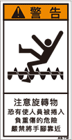 TOP中国語ラベル (繁体) 巻き込まれ Sサイズ (61×31) ZH-308-S 巻込まれ(61×31) 価格: ¥160 (税込 ¥176) 販売期間: 型番: ZH-308-S 数量: 枚 在庫 在庫あり 日本語訳 回転物注意巻き込まれ重傷の恐れあり手足を近づけるな 商品説明 PET樹脂製の警告ラベルです。表面はラミネート加工です。 商品仕様 製品名: 警告ラベル 繁体語 型番: ZH-308-S 外寸法: 幅31mm × 高さ61mm 製品重量: 1g ・RoHS(10種)対応 / REACH対応 ・屋外/屋内対応 ・スクリーン印刷 ・耐熱性 -20℃〜80℃ ・耐油性 ギヤ油72時間変化なし ・耐候性 ウェザーメーター 400時間変化なし