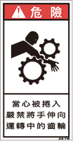 TOP中国語ラベル (繁体) 巻き込まれ Sサイズ (61×31) ZH-321-S 巻込まれ(61×31) 価格: ¥160 (税込 ¥176) 販売期間: 型番: ZH-321-S 数量: 枚 在庫 在庫あり 日本語訳 巻き込まれ注意回転中のギアに手を出すな 商品説明 PET樹脂製の警告ラベルです。表面はラミネート加工です。 商品仕様 製品名: 警告ラベル 繁体語 型番: ZH-321-S 外寸法: 幅31mm × 高さ61mm 製品重量: 1g ・RoHS(10種)対応 / REACH対応 ・屋外/屋内対応 ・スクリーン印刷 ・耐熱性 -20℃〜80℃ ・耐油性 ギヤ油72時間変化なし ・耐候性 ウェザーメーター 400時間変化なし