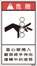 TOP中国語ラベル (繁体) 巻き込まれ Mサイズ (90×50) ZH-323-M 巻込まれ(90×50) 価格: ¥210 (税込 ¥231) 販売期間: 型番: ZH-323-M 数量: 枚 在庫 在庫あり 日本語訳 巻き込まれ注意回転中のローラーに手を出すな 商品説明 PET樹脂製の警告ラベルです。表面はラミネート加工です。 商品仕様 製品名: 警告ラベル 繁体語 型番: ZH-323-M 外寸法: 幅50mm × 高さ90mm 製品重量: 2g ・RoHS(10種)対応 / REACH対応 ・屋外/屋内対応 ・スクリーン印刷 ・耐熱性 -20℃〜80℃ ・耐油性 ギヤ油72時間変化なし ・耐候性 ウェザーメーター 400時間変化なし