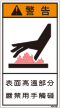 TOP中国語ラベル (繁体) 高温 Mサイズ (90×50) ZH-401-M 高温(90×50) 価格: ¥210 (税込 ¥231) 販売期間: 型番: ZH-401-M 数量: 枚 在庫 在庫あり 日本語訳 表面高温部手を触れるな 商品説明 PET樹脂製の警告ラベルです。表面はラミネート加工です。 商品仕様 製品名: 警告ラベル 繁体語 型番: ZH-401-M 外寸法: 幅50mm × 高さ90mm 製品重量: 2g ・RoHS(10種)対応 / REACH対応 ・屋外/屋内対応 ・スクリーン印刷 ・耐熱性 -20℃〜80℃ ・耐油性 ギヤ油72時間変化なし ・耐候性 ウェザーメーター 400時間変化なし