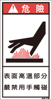 TOP中国語ラベル (繁体) 高温 Sサイズ (61×31) ZH-421-S 高温(61×31) 価格: ¥160 (税込 ¥176) 販売期間: 型番: ZH-421-S 数量: 枚 在庫 在庫あり 日本語訳 表面高温部手を触れるな 商品説明 PET樹脂製の警告ラベルです。表面はラミネート加工です。 商品仕様 製品名: 警告ラベル 繁体語 型番: ZH-421-S 外寸法: 幅31mm × 高さ61mm 製品重量: 1g ・RoHS(10種)対応 / REACH対応 ・屋外/屋内対応 ・スクリーン印刷 ・耐熱性 -20℃〜80℃ ・耐油性 ギヤ油72時間変化なし ・耐候性 ウェザーメーター 400時間変化なし