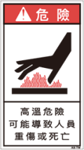 TOP中国語ラベル (繁体) 高温 Mサイズ (90×50) ZH-422-M 高温(90×50) 価格: ¥210 (税込 ¥231) 販売期間: 型番: ZH-422-M 数量: 枚 在庫 在庫あり 日本語訳 高温危険重傷又は死亡の可能性あり 商品説明 PET樹脂製の警告ラベルです。表面はラミネート加工です。 商品仕様 製品名: 警告ラベル 繁体語 型番: ZH-422-M 外寸法: 幅50mm × 高さ90mm 製品重量: 2g ・RoHS(10種)対応 / REACH対応 ・屋外/屋内対応 ・スクリーン印刷 ・耐熱性 -20℃〜80℃ ・耐油性 ギヤ油72時間変化なし ・耐候性 ウェザーメーター 400時間変化なし