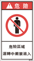 TOP中国語ラベル (繁体) 禁止 Mサイズ (90×50) ZH-621-M 禁止(90×50) 価格: ¥210 (税込 ¥231) 販売期間: 型番: ZH-621-M 数量: 枚 在庫 在庫あり 日本語訳 区域内注意運転中は立ち入り禁止 商品説明 PET樹脂製の警告ラベルです。表面はラミネート加工です。 商品仕様 製品名: 警告ラベル 繁体語 型番: ZH-621-M 外寸法: 幅50mm × 高さ90mm 製品重量: 2g ・RoHS(10種)対応 / REACH対応 ・屋外/屋内対応 ・スクリーン印刷 ・耐熱性 -20℃〜80℃ ・耐油性 ギヤ油72時間変化なし ・耐候性 ウェザーメーター 400時間変化なし