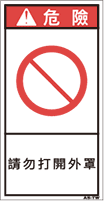 TOP中国語ラベル (繁体) 禁止 Sサイズ (61×31) ZH-628-S 禁止(61×31) 価格: ¥160 (税込 ¥176) 販売期間: 型番: ZH-628-S 数量: 枚 在庫 在庫あり 日本語訳 カバーを外すな 商品説明 PET樹脂製の警告ラベルです。表面はラミネート加工です。 商品仕様 製品名: 警告ラベル 繁体語 型番: ZH-628-S 外寸法: 幅31mm × 高さ61mm 製品重量: 1g ・RoHS(10種)対応 / REACH対応 ・屋外/屋内対応 ・スクリーン印刷 ・耐熱性 -20℃〜80℃ ・耐油性 ギヤ油72時間変化なし ・耐候性 ウェザーメーター 400時間変化なし
