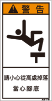 TOP中国語ラベル (繁体) その他 Sサイズ (61×31) ZH-806-S その他(61×31) 価格: ¥160 (税込 ¥176) 販売期間: 型番: ZH-806-S 数量: 枚 在庫 在庫あり 日本語訳 落下注意足元に注意 商品説明 PET樹脂製の警告ラベルです。表面はラミネート加工です。 商品仕様 製品名: 警告ラベル 繁体語 型番: ZH-806-S 外寸法: 幅31mm × 高さ61mm 製品重量: 1g ・RoHS(10種)対応 / REACH対応 ・屋外/屋内対応 ・スクリーン印刷 ・耐熱性 -20℃〜80℃ ・耐油性 ギヤ油72時間変化なし ・耐候性 ウェザーメーター 400時間変化なし