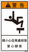 TOP中国語ラベル (繁体) その他 Mサイズ (90×50) ZH-806-M その他(90×50) 価格: ¥210 (税込 ¥231) 販売期間: 型番: ZH-806-M 数量: 枚 在庫 在庫あり 日本語訳 落下注意足元に注意 商品説明 PET樹脂製の警告ラベルです。表面はラミネート加工です。 商品仕様 製品名: 警告ラベル 繁体語 型番: ZH-806-M 外寸法: 幅50mm × 高さ90mm 製品重量: 2g ・RoHS(10種)対応 / REACH対応 ・屋外/屋内対応 ・スクリーン印刷 ・耐熱性 -20℃〜80℃ ・耐油性 ギヤ油72時間変化なし ・耐候性 ウェザーメーター 400時間変化なし