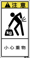 TOP中国語ラベル (繁体) その他 Sサイズ (61×31) ZH-8111-S 重量物注意 (61×31) 価格: ¥160 (税込 ¥176) 販売期間: 型番: ZH-8111-S 数量: 枚 在庫 在庫あり サイズ:縦 61mm 横 31mm 日本語訳 重量物注意 商品説明 PET樹脂製の警告ラベルです。表面はラミネート加工です。 商品仕様 型番: ZH-8111-S 外寸法: 幅31mm × 高さ61mm 製品重量: 1g ・RoHS(10種)対応 / REACH対応 ・屋外/屋内対応 ・スクリーン印刷 ・耐熱性 -20℃〜80℃ ・耐油性 ギヤ油72時間変化なし ・耐候性 ウェザーメーター 400時間変化なし