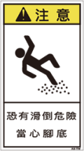TOP中国語ラベル (繁体) その他 Mサイズ (90×50) ZH-817-M その他(90×50) 価格: ¥210 (税込 ¥231) 販売期間: 型番: ZH-817-M 数量: 枚 在庫 在庫あり 日本語訳 滑る恐れあり足元に注意 商品説明 PET樹脂製の警告ラベルです。表面はラミネート加工です。 商品仕様 製品名: 警告ラベル 繁体語 型番: ZH-817-M 外寸法: 幅50mm × 高さ90mm 製品重量: 2g ・RoHS(10種)対応 / REACH対応 ・屋外/屋内対応 ・スクリーン印刷 ・耐熱性 -20℃〜80℃ ・耐油性 ギヤ油72時間変化なし ・耐候性 ウェザーメーター 400時間変化なし