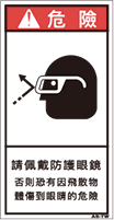 TOP中国語ラベル (繁体) その他 Sサイズ (61×31) ZH-824-S その他(61×31) 価格: ¥160 (税込 ¥176) 販売期間: 型番: ZH-824-S 数量: 枚 在庫 在庫あり 日本語訳 保護眼鏡着用飛散物により目を痛める恐れあり 商品説明 PET樹脂製の警告ラベルです。表面はラミネート加工です。 商品仕様 製品名: 警告ラベル 繁体語 型番: ZH-824-S 外寸法: 幅31mm × 高さ61mm 製品重量: 1g ・RoHS(10種)対応 / REACH対応 ・屋外/屋内対応 ・スクリーン印刷 ・耐熱性 -20℃〜80℃ ・耐油性 ギヤ油72時間変化なし ・耐候性 ウェザーメーター 400時間変化なし