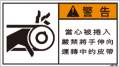 TOP中国語ラベル (繁体) 巻き込まれ Mサイズ (90×50) ZW-253-M 巻込まれ(90×50) 価格: ¥210 (税込 ¥231) 販売期間: 型番: ZW-253-M 数量: 枚 在庫 在庫あり 日本語訳 巻き込まれ注意回転中のベルトに手を出すな 商品説明 PET樹脂製の警告ラベルです。表面はラミネート加工です。 商品仕様 製品名: 警告ラベル 繁体語 型番: ZW-253-M 外寸法: 幅90mm × 高さ50mm 製品重量: 2g ・RoHS(10種)対応 / REACH対応 ・屋外/屋内対応 ・スクリーン印刷 ・耐熱性 -20℃〜80℃ ・耐油性 ギヤ油72時間変化なし ・耐候性 ウェザーメーター 400時間変化なし