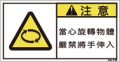 TOP中国語ラベル (繁体) 巻き込まれ Sサイズ (61×31) ZW-267-S 巻込まれ(61×31) 価格: ¥160 (税込 ¥176) 販売期間: 型番: ZW-267-S 数量: 枚 在庫 在庫あり 日本語訳 回転物注意手を入れるな 商品説明 PET樹脂製の警告ラベルです。表面はラミネート加工です。 商品仕様 製品名: 警告ラベル 繁体語 型番: ZW-267-S 外寸法: 幅61mm × 高さ31mm 製品重量: 1g ・RoHS(10種)対応 / REACH対応 ・屋外/屋内対応 ・スクリーン印刷 ・耐熱性 -20℃〜80℃ ・耐油性 ギヤ油72時間変化なし ・耐候性 ウェザーメーター 400時間変化なし