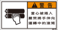 TOP中国語ラベル (繁体) 巻き込まれ Sサイズ (61×31) ZW-355-S 巻込まれ(61×31) 価格: ¥160 (税込 ¥176) 販売期間: 型番: ZW-355-S 数量: 枚 在庫 在庫あり 日本語訳 巻き込まれ注意回転中のローラーに手を出すな 商品説明 PET樹脂製の警告ラベルです。表面はラミネート加工です。 商品仕様 製品名: 警告ラベル 繁体語 型番: ZW-355-S 外寸法: 幅61mm × 高さ31mm 製品重量: 1g ・RoHS(10種)対応 / REACH対応 ・屋外/屋内対応 ・スクリーン印刷 ・耐熱性 -20℃〜80℃ ・耐油性 ギヤ油72時間変化なし ・耐候性 ウェザーメーター 400時間変化なし