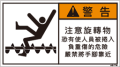 TOP中国語ラベル (繁体) 巻き込まれ Mサイズ (90×50) ZW-358-M 巻込まれ(90×50) 価格: ¥210 (税込 ¥231) 販売期間: 型番: ZW-358-M 数量: 枚 在庫 在庫あり 日本語訳 回転物注意巻き込まれ重傷の恐れあり手足を近づけるな 商品説明 PET樹脂製の警告ラベルです。表面はラミネート加工です。 商品仕様 製品名: 警告ラベル 繁体語 型番: ZW-358-M 外寸法: 幅90mm × 高さ50mm 製品重量: 2g ・RoHS(10種)対応 / REACH対応 ・屋外/屋内対応 ・スクリーン印刷 ・耐熱性 -20℃〜80℃ ・耐油性 ギヤ油72時間変化なし ・耐候性 ウェザーメーター 400時間変化なし