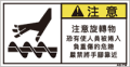 TOP中国語ラベル (繁体) 巻き込まれ Sサイズ (61×31) ZW-367-S 巻込まれ(61×31) 価格: ¥160 (税込 ¥176) 販売期間: 型番: ZW-367-S 数量: 枚 在庫 在庫あり 日本語訳 回転物注意巻き込まれ重傷の恐れあり手足を近づけるな 商品説明 PET樹脂製の警告ラベルです。表面はラミネート加工です。 商品仕様 製品名: 警告ラベル 繁体語 型番: ZW-367-S 外寸法: 幅61mm × 高さ31mm 製品重量: 1g ・RoHS(10種)対応 / REACH対応 ・屋外/屋内対応 ・スクリーン印刷 ・耐熱性 -20℃〜80℃ ・耐油性 ギヤ油72時間変化なし ・耐候性 ウェザーメーター 400時間変化なし