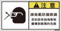 TOP中国語ラベル (繁体) その他 Sサイズ (61×31) ZW-864-S その他(61×31) 価格: ¥160 (税込 ¥176) 販売期間: 型番: ZW-864-S 数量: 枚 在庫 在庫あり 日本語訳 保護眼鏡着用飛散物により目を痛める恐れあり 商品説明 PET樹脂製の警告ラベルです。表面はラミネート加工です。 商品仕様 製品名: 警告ラベル 繁体語 型番: ZW-864-S 外寸法: 幅61mm × 高さ31mm 製品重量: 1g ・RoHS(10種)対応 / REACH対応 ・屋外/屋内対応 ・スクリーン印刷 ・耐熱性 -20℃〜80℃ ・耐油性 ギヤ油72時間変化なし ・耐候性 ウェザーメーター 400時間変化なし