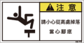 TOP中国語ラベル (繁体) その他 Sサイズ (61×31) ZW-866-S その他(61×31) 価格: ¥160 (税込 ¥176) 販売期間: 型番: ZW-866-S 数量: 枚 在庫 在庫あり 日本語訳 落下注意足元に注意 商品説明 PET樹脂製の警告ラベルです。表面はラミネート加工です。 商品仕様 製品名: 警告ラベル 繁体語 型番: ZW-866-S 外寸法: 幅61mm × 高さ31mm 製品重量: 1g ・RoHS(10種)対応 / REACH対応 ・屋外/屋内対応 ・スクリーン印刷 ・耐熱性 -20℃〜80℃ ・耐油性 ギヤ油72時間変化なし ・耐候性 ウェザーメーター 400時間変化なし